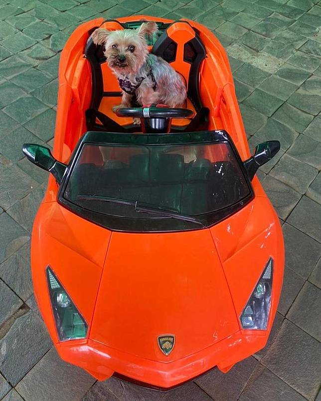 Di laman instagramnya, pengacara kondang itu membagikan gambar saat anjing peliharaannya yang bernama Bobo naik mobil mewah itu. Beda nya, lamborghini itu berukuran kecil dan biasa digunakan untuk anak-anak.