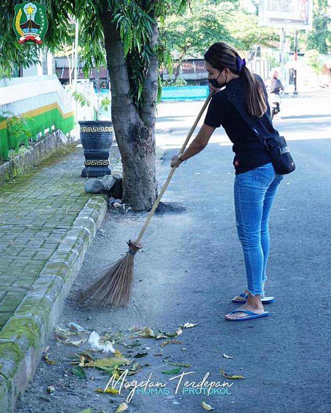 Warganet tersita perhatiannya oleh unggahan foto wanita cantik yang menyapu jalanan. Foto tersebut diunggah akun Humas & Protokol Setdakab Magetan di Facebook.